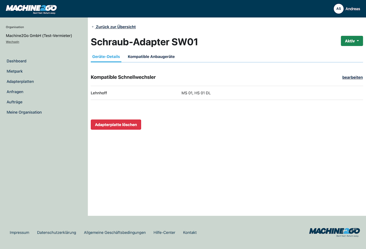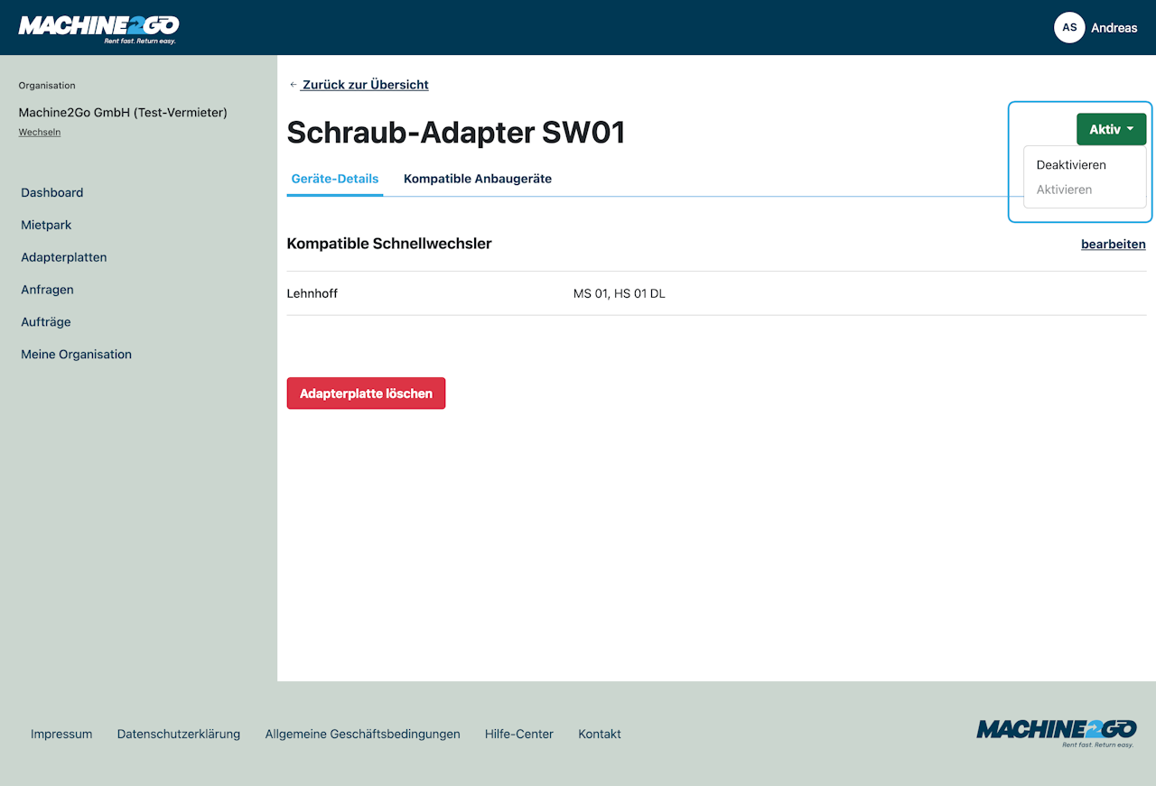 Du kannst eine Adapterplatte nach Erfassung beliebig bearbeiten und bei Bedarf auch löschen.