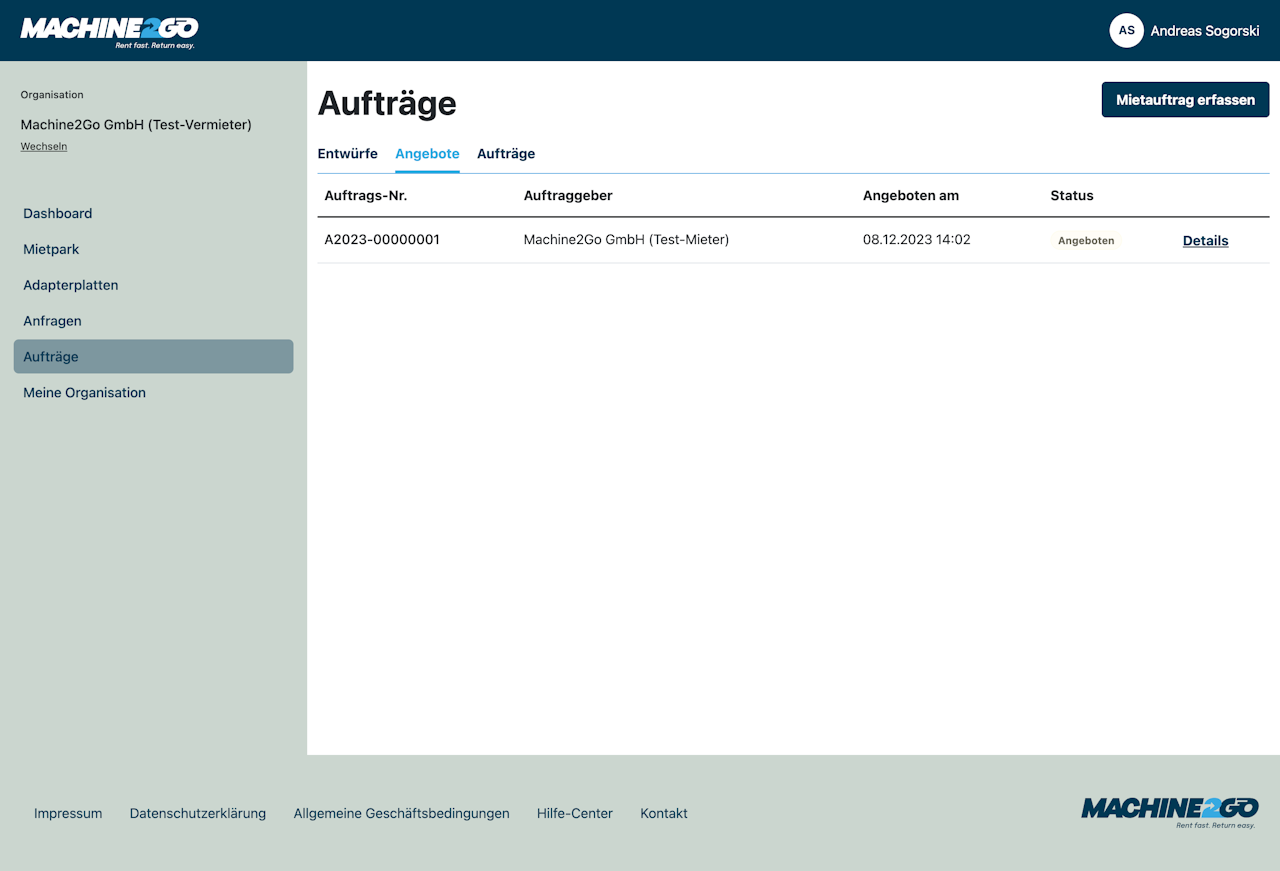 Einen Auftrag legst du immer für eine andere Organisation als Auftraggeber an.